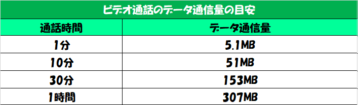 ビデオ通話➡1GB・・・3.25時間