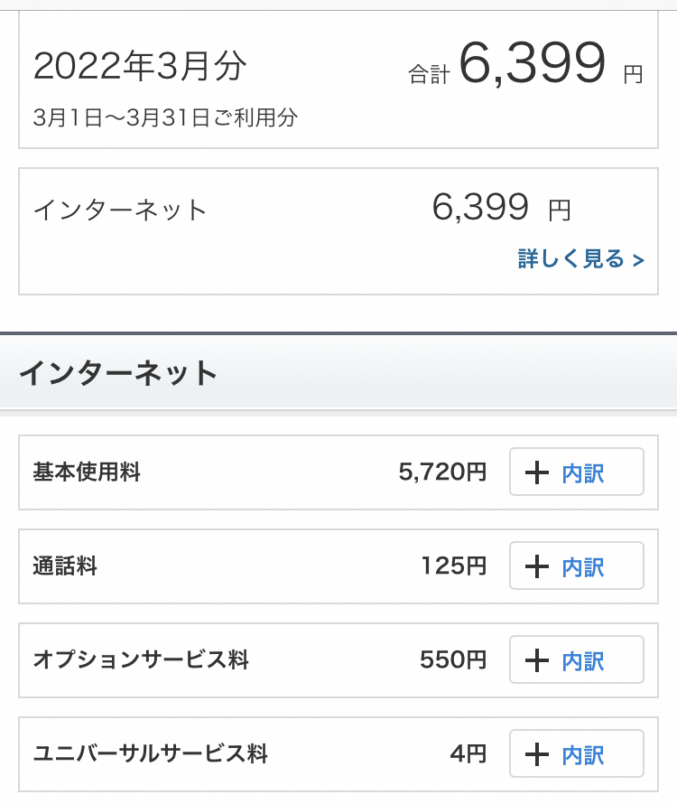 我が家の2022年3月のソフトバンク光の料金です。