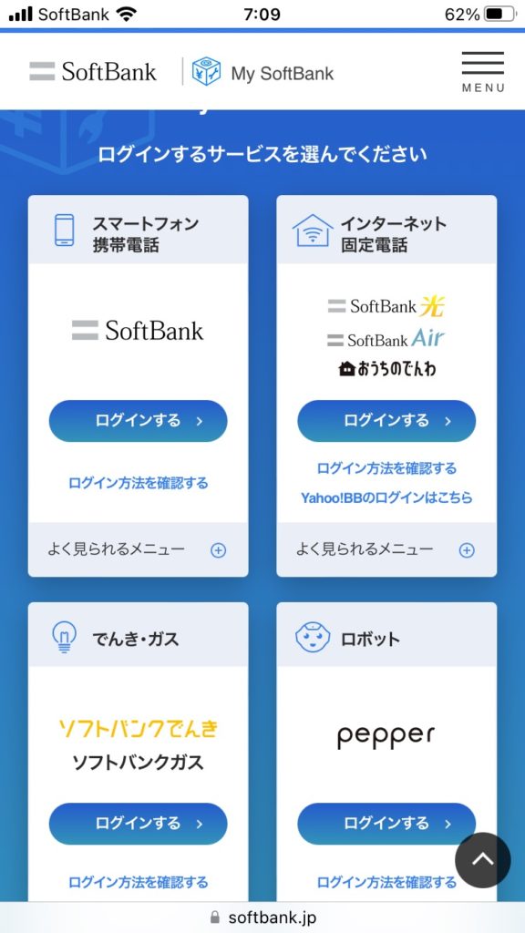 ソフトバンクはソフトバンク会員専用ページの「My SoftBank」から