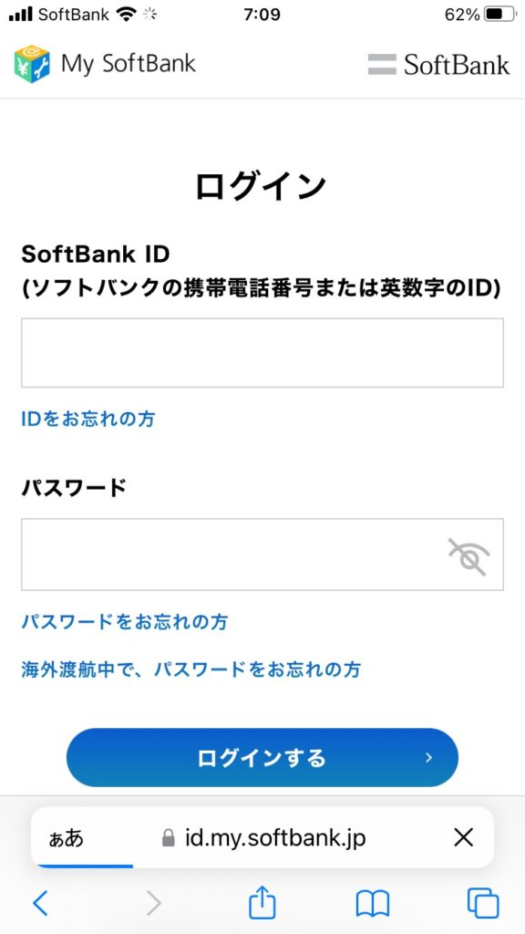 ソフトバンクIDとパスワードを入力。