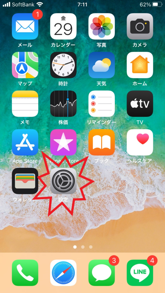 ①「設定」をタップ