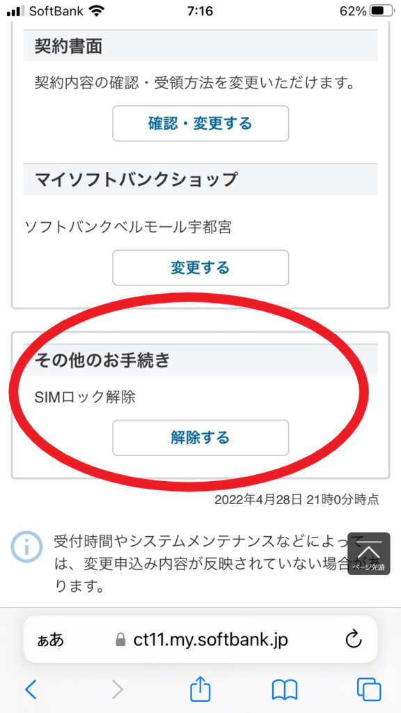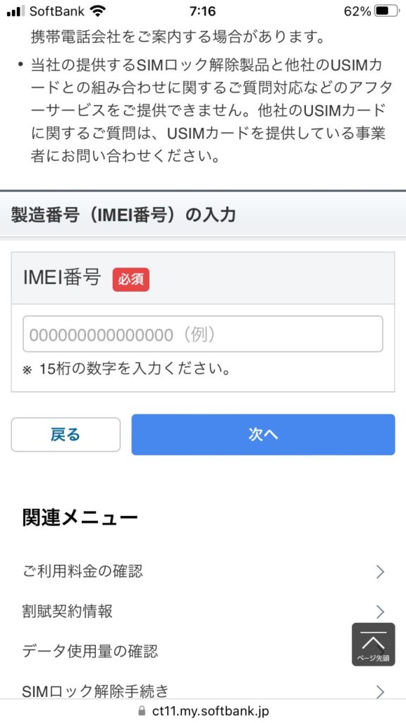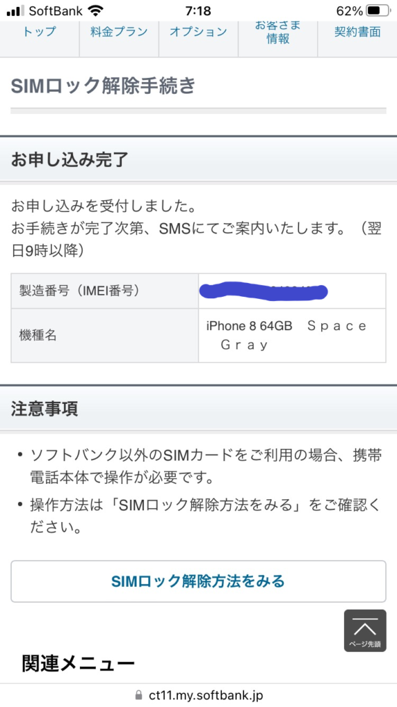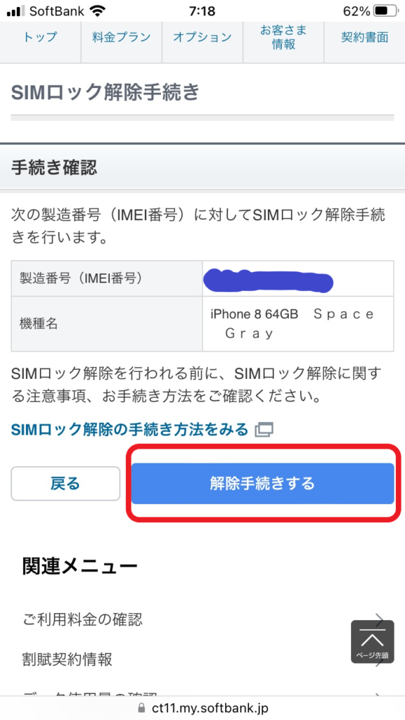 My SoftBankでSIMロック解除する